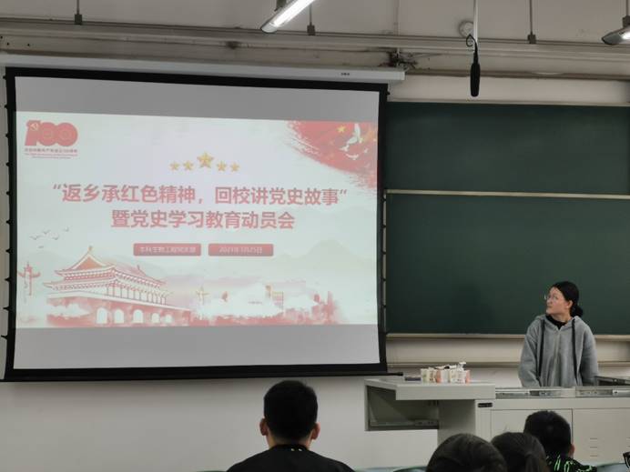 为了深入学习习近平总书记在党史学习教育动员大会上的讲话精神,加强党史知识学习,迎接建党100周年,3月25日16:00本科生工党支部在X2231顺利开展了“返乡承红色精神,回校讲党史故事”暨党史学习教育动员会活动。会议的主要内容为专题学习,以及党支部成员在寒假期间对家乡红色历史的学习进行分享展示。