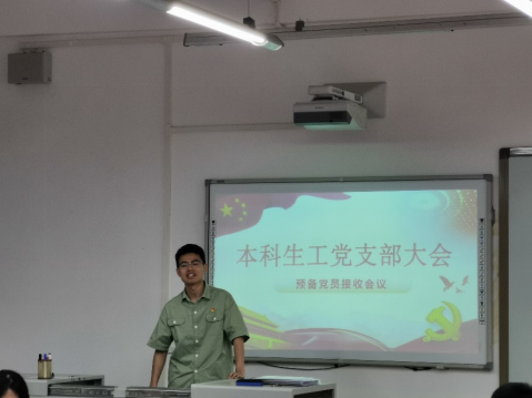 2021年5月27日晚19:00,本科生物工程党支部在X9403顺利召开了党支部大会。本次支部大会的主要内容是党员发展以及党支部党史学习教育,会议由党支部书记黄斌翰主持。