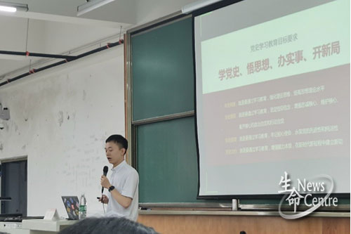 博士宣讲团成员邢斐老师主讲,生命学院党委书记葛永明、副书记赵钢锋、团委书记高鹏等也出席了此次会议。参会人员有2019级全体同学,2018、2020级班长、团支书。