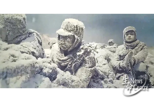 1950年,中国人民志愿军部队与美军在朝鲜长津湖地区交战,中国人民志愿军第9兵团将美军1个多师分割包围于长津湖地区,歼敌1.3万余人,扭转了战场态势。这次战役收复了三八线以北的东部广大地区,是扭转局势的关键一战,而中国人民志愿军也付出了惨痛的牺牲,在零下三十多摄氏度的极端天气中,很多先烈是以端着枪的姿势被冻僵,体现了志愿军战士服从命令视死如归、冻成冰雕也不退缩的革命精神。