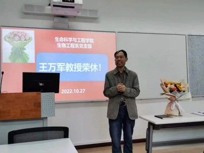 支部邀请了生物工程系退休党员王万军同志讲话,王万军同志向大家介绍了对党的二十大精神的感悟,回顾了我们学院的发展史,希望同志们紧密结合国家、学校和社会发展需求努力工作,让学院和生物工程系越来越好。同志们都祝贺王万军同志光荣退休,也感谢王万军同志的多年对生物工程系和学院的付出,对老师们的指导和帮助。