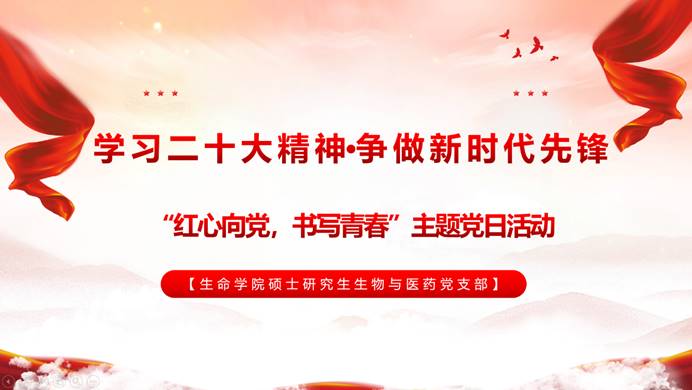 为了深入学习习近平总书记在中国共产党第二十次全国代表大会上的重要讲话精神,奋力谱写中华民族伟大复兴的西南交大新篇章,切实以立志做有理想、敢担当、能吃苦、肯奋斗的新时代好青年为标准来要求自身。20221222日晚1900,生命学院硕士研究生生物与医药党支部组织开展了以红心向党,书写青春为主题的党支部特色活动。此次活动进一步推动学习型创新型并行的党支部建设,将青春抱负切实融入全面建设社会主义现代化国家、实现中华民族伟大复兴而奋斗的伟大事业中。