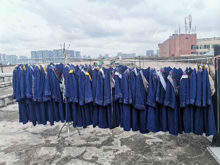 在实践环节,培训学员积极参加志愿服务活动,他们认真打扫学院公共区域的墙面、地面卫生,清洗、晾晒、熨烫毕业生学位服,切实为学院师生服务。