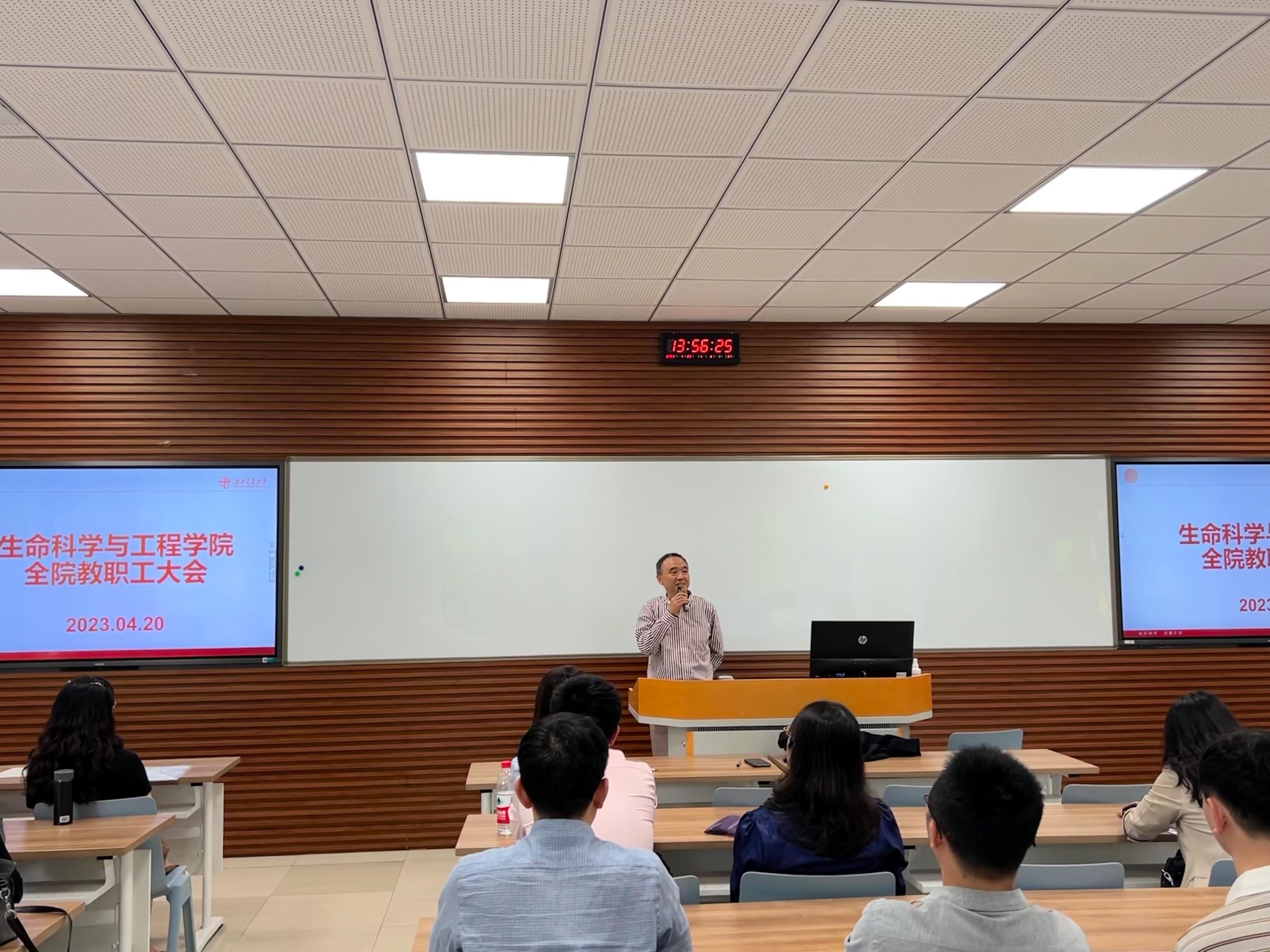 在犀浦校区1201召开全院教职大会,学院领导班子成员和全体教职工出席大会。会议由学院党委书记李卓慧主持。