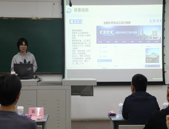 最后,学院青年讲师团成员陈晨同学上台进行分享交流,他对学院相关科研竞赛做了全面且详细的介绍。第九届全国大学生生命科学竞赛一等获奖队伍代表,学院青年讲师团成员王庆、学院青年讲师团成员吴乐上台分享了赛事经验。全国大学生化工设计竞赛国家二等奖获奖队伍代表,学院青年讲师团成员姚力涛分享获奖历程与备赛经验。