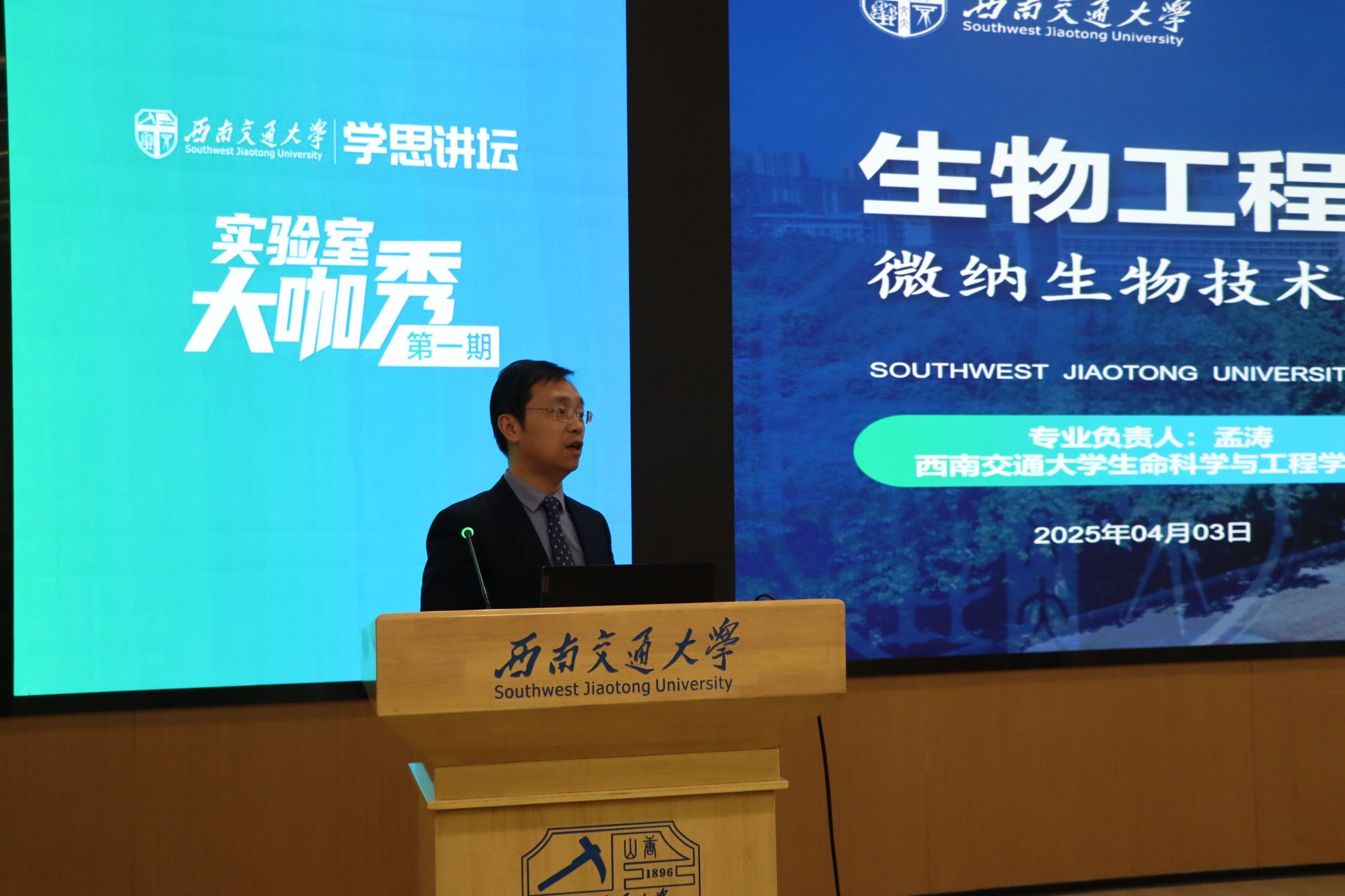 活动伊始,孟涛教授以生动案例介绍了生物工程专业的发展前景,并深入浅出地讲解了微纳生物技术在药物递送、功能材料等领域的应用。他特别提到:“微纳尺度下的生物操控技术正推动医疗与工业的变革”,激发了同学们对微纳生物技术的浓厚兴趣。