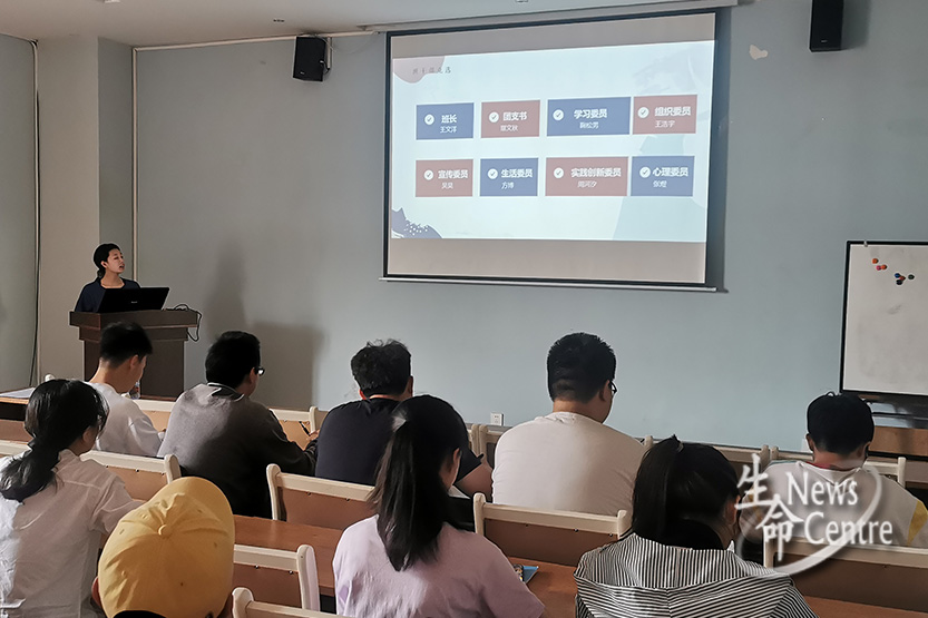 之后,进行新学期班委的竞选。经过简短的答辩,各项班委无人员变动,结果为班长王文洋,团支部书记覃文秋,学习委员鞠松男,权益与生活委员方博,宣传委员吴昊,组织委员王浩宇,实践创新与文体委员周河汐,以及心理委员张煜。