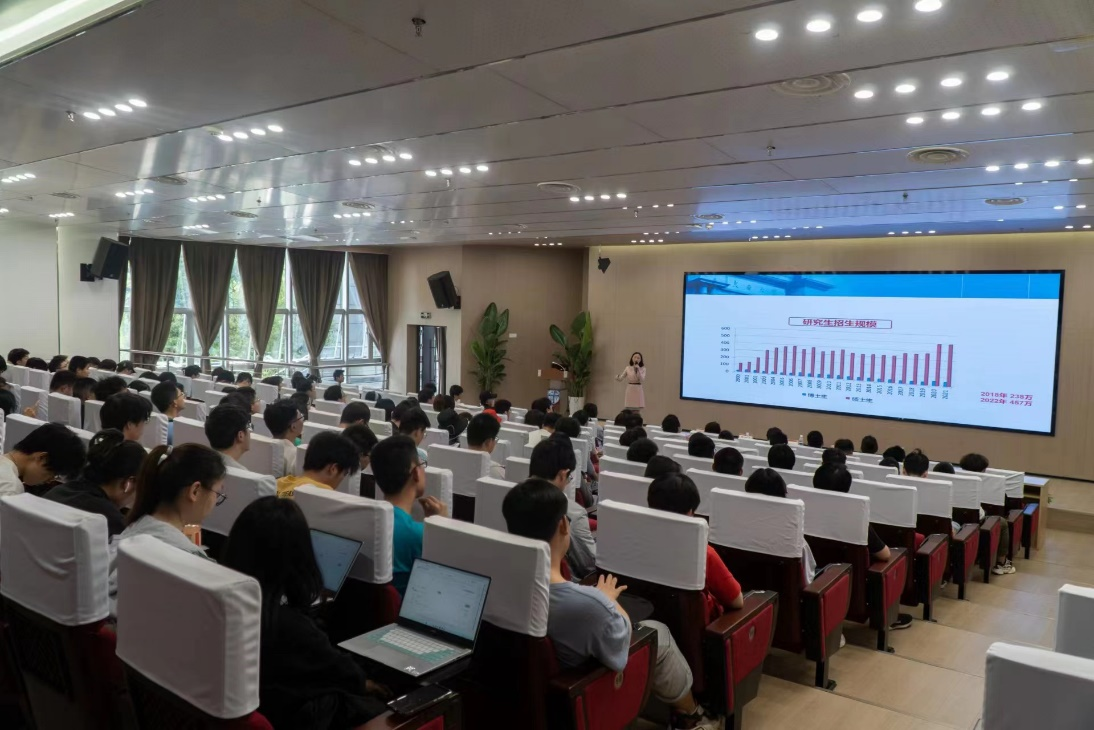针对当前大学生的职业生涯规划困惑,特别是毕业生的考研和就业问题,4月14日下午, 香蕉视频 邀请国家职业生涯规划师、四川省第七届高校辅导员年度人物马琼副教授做客第二期《学思讲坛》,以“一研为定OR一定为研”为题,从为什么要考研、考研的全过程、如何安排自己的考研进程、如何确定是考研还是就业等方面,为2019级、2020级300余名本科生上了一堂生动的职业生涯规划课。