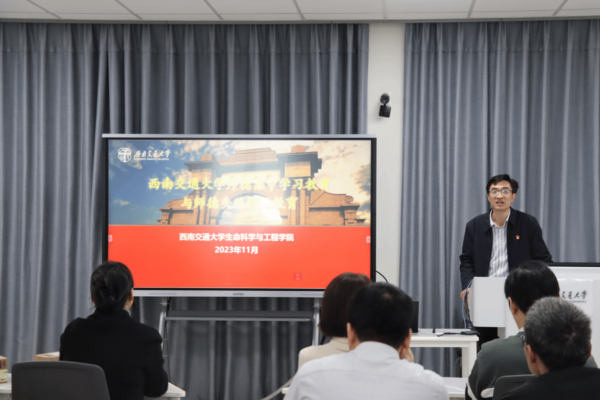 11月23日下午,生命学院党委、关工委、院工会在犀浦校区举办了“为生命增光,为交大添彩”教师工作坊主题活动。学院党委书记李卓慧,党委副书记、纪委书记、工会主席朱炜,副院长李遂焰,院长助理黄新河、华晶晶、王毅及学院部分教师参加本次活动,活动由朱炜副书记主持。