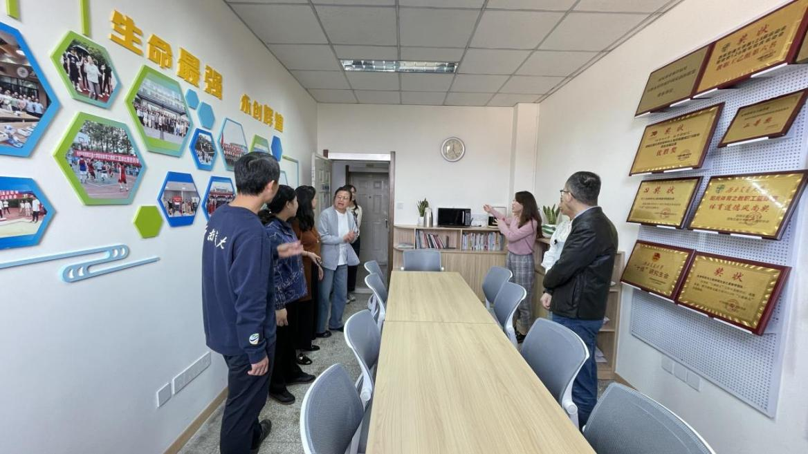 2024年10月23日下午,校工会高磊副主席带队对 香蕉视频 位于九里校区J3604的“教职工小家”阵地建设项目进行了验收。学院党委书记黄春蓉向工会一行详细介绍了教职工小家的建设情况。学院工会委员、办公室主任参加了验收。
