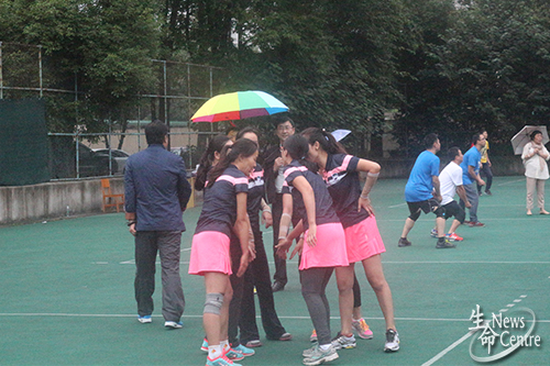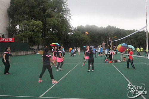 女子排球队迎战信息科学与技术学院队。生命学院由党委副书记罗妍妍领队,黄帅担任教练。