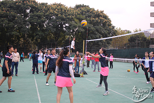 交换场地后,双方商量战术,调整人员安排。第二局比赛一开始,经管学院队员迅速将比分拉至4:0,然生命学院队员不气馁,发球、掂球、扣球,一个个漂亮的反击赢得现场一片喝彩。比分为20:20时,比赛进入白热化阶段,双方势均力敌、竞争激烈,观众也投入激烈的赛事中,最终生命学院以24:21险胜经管学院。