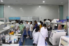 首先,常青树生物公司董事兼总经理、技术总监靳鹏先生介绍了公司的众多奖项与专利;然后带领大家来到科普馆,了解了干细胞及其在人类疾病治疗与保健方面的应用等知识;最后,进入生产与研发功能于一体的超净工作室实地学习。如此大面积的万级标准化超净室,以及内部先进的细胞培养箱、离心机、大容量的冻存罐等仪器设备,同学们还是第一次看到,同学们不仅感受到了良好的生产环境对于细胞培养的重要性,同时也惊叹科技在挽救人类生命过程中的巨大力量。