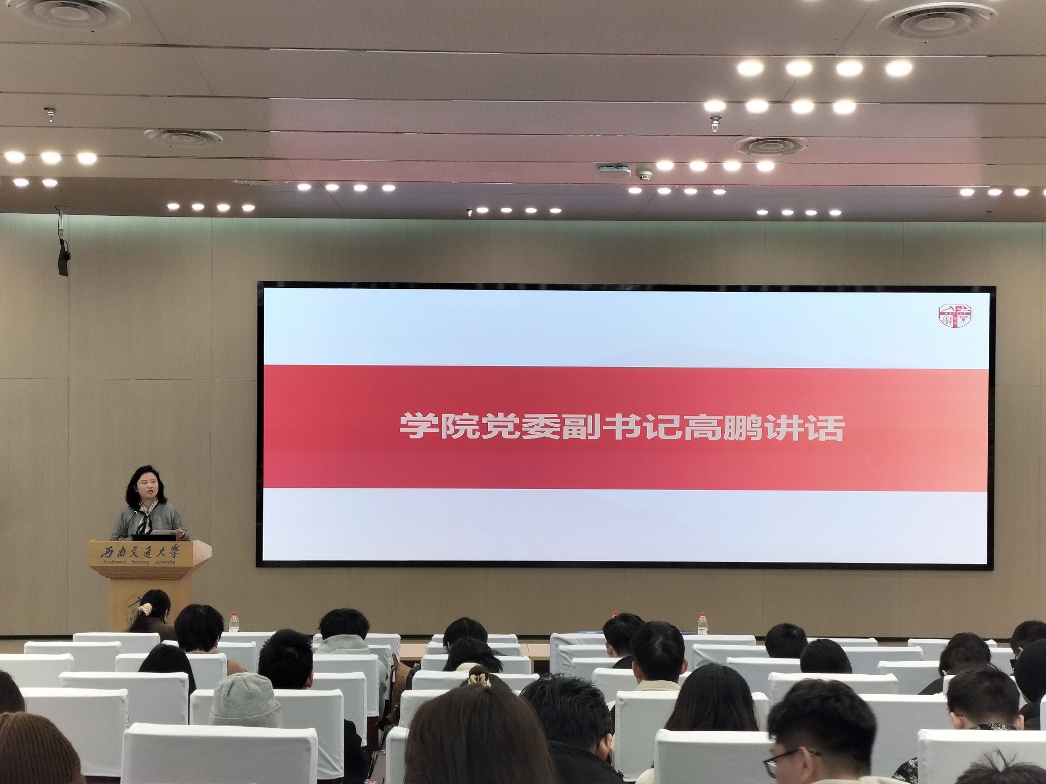在图书馆二号报告厅举办“圆梦职途”求职能力提升讲座暨2025届本科生年级大会。学校高级生涯导师杨子仪、学院党委副书记高鹏、2025届本科毕业生辅导员胡慧怡、曾韵芝及全体2025届本科毕业生参会。