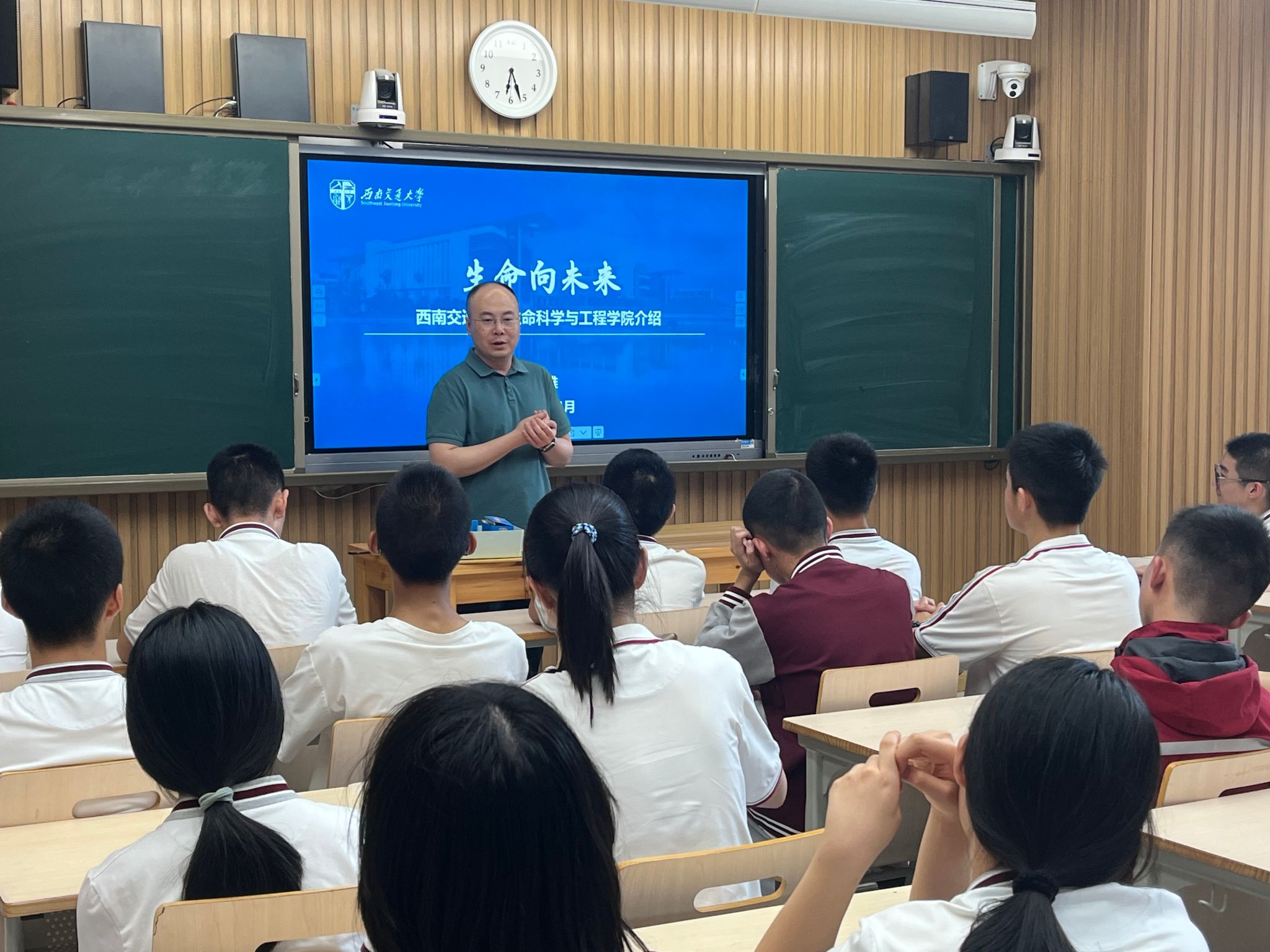 2025年5月20日下午18:30,生命学院赴成都金苹果锦城第一中学开展科普讲座,旨在推动高校与中学协同育人,激发中学生对生命科学的兴趣。讲座由生命学院实验中心副主任熊雄老师主讲,吸引了该校近100名初三学生参加。生命学院中外合作办学项目事务员兰卓老师陪同前往。