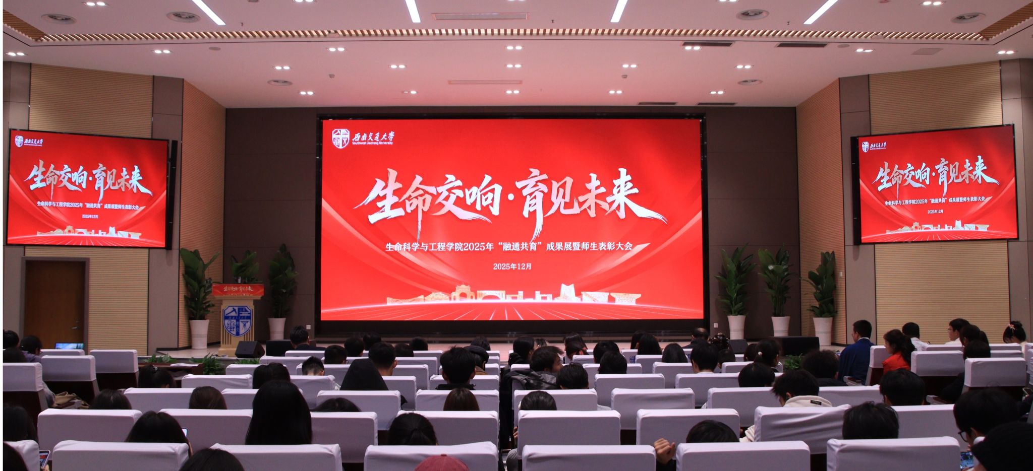 2025年“融通共育”育人成果展暨师生表彰大会在犀浦校区双一流会议中心举行。学院院长周先礼、党委书记黄春蓉、副书记高鹏、学院“融通共育”专项指导老师、教师代表、学生代表等400余人齐聚一堂,共同回顾学院年度育人成果,表彰先进典型,凝聚奋进力量。