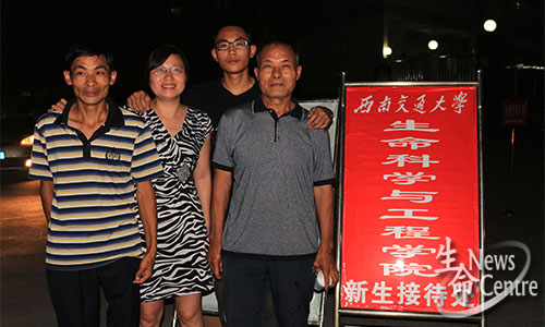 5:30,志愿者们开始布置现场,13级辅导员高鹏也参与其中。在大家共同努力下,一切事宜准备就绪,只待学弟学妹的到来。6:30,生命学院迎来本院第一位新生,学生组织及班级志愿者以饱满的热情迎接新生的到来。查询学籍号、班号、寝室号,发放一卡通,拍照留念……迎新接待工作有条不紊地进行着。引导小组志愿者也积极参与其中,提行李、买棉絮、答疑解惑······当有家长陪同孩子来报到时,志愿者们递凳子、倒水,一派温情。报到的新生越来越多,大家忙得不亦乐乎。
