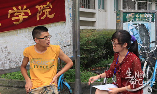 通过自主招生进入生命学院的2013级王粮健在迎新第一天即8月27日就来到了学校,看到学长、学姐在迎新现场忙的不亦乐乎,28日,他顺利完成注册、体检事项后,也参与到了迎新工作中。由于对学校建筑分布不甚清楚,目前只能做一些为家长端茶倒水、提送行李之类的“体力活”,但王粮健仍热情依旧,争着向前。