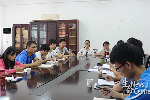 领导班子就届时各方面细节于10月12日15:23在X2105准时开始了一场别开生面的研讨会。本场研讨会由生命学院党委副书记罗妍妍主持,团委书记崔健,团委副书记孔琳、李慧明,13级辅导员高鹏、魏源成,团委办公室主任谭富明,生命学院五大团学组织代表及两位年级助理也积极参与其中。