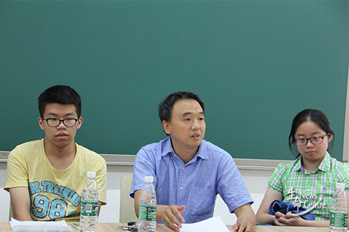 紧接着,李遂焰老师代表彭雪林老师及自己向13级中美班同学表示祝愿与期望,且悉心嘱托同学们出国后一定要按规矩办事。而后,由李映东同学代表全体13级中美班学生向两年来老师们的谆谆教导与悉心关怀表示感谢。接下来与会老师与同学们进行了交流。