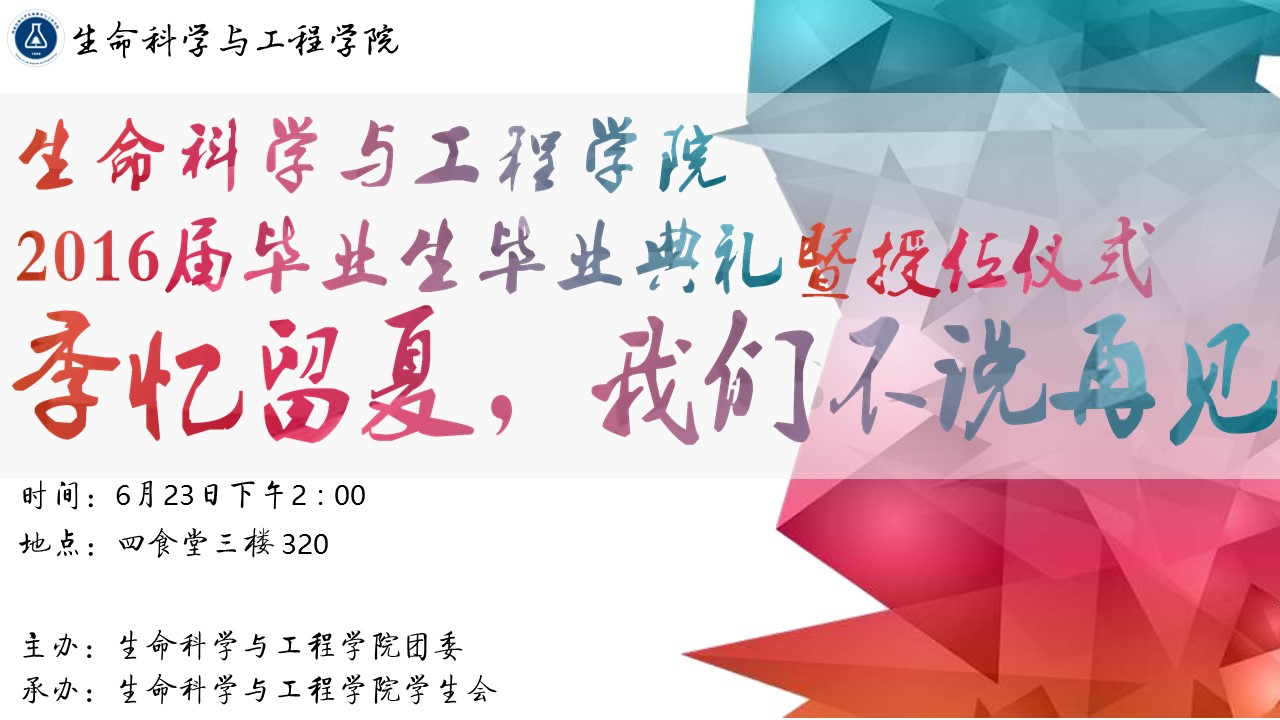 2016届毕业典礼暨学位授予仪式 “季忆留夏,我们不说再见”毕业典礼,将于6月23日(本周四)14:00在犀浦校区四食堂三楼320教室隆重举行。