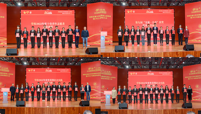 举行共青团实践育人成果展暨2022年度总结表彰大会,在2022年开展的社会实践、志愿服务工作中,生命学院获评四川省社会实践优秀品牌项目1项;获第九届“交通·公益”志愿服务季优胜奖;4位老师获得共青团实践育人优秀指导老师;9名同学获得社会实践校级优秀队员;3支队伍获得社会实践校级优秀队伍。校党委副书记余敏明出席大会,并向获奖集体及个人颁奖,学院党委副书记朱炜、团委书记高鹏及学生代表出席此次大会,学院青协会会长钟诗怡以《君子履正道,实践育新人》为题做工作分享报告。