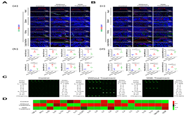 图5. 败血症小鼠不同器官的免疫荧光染色图像。