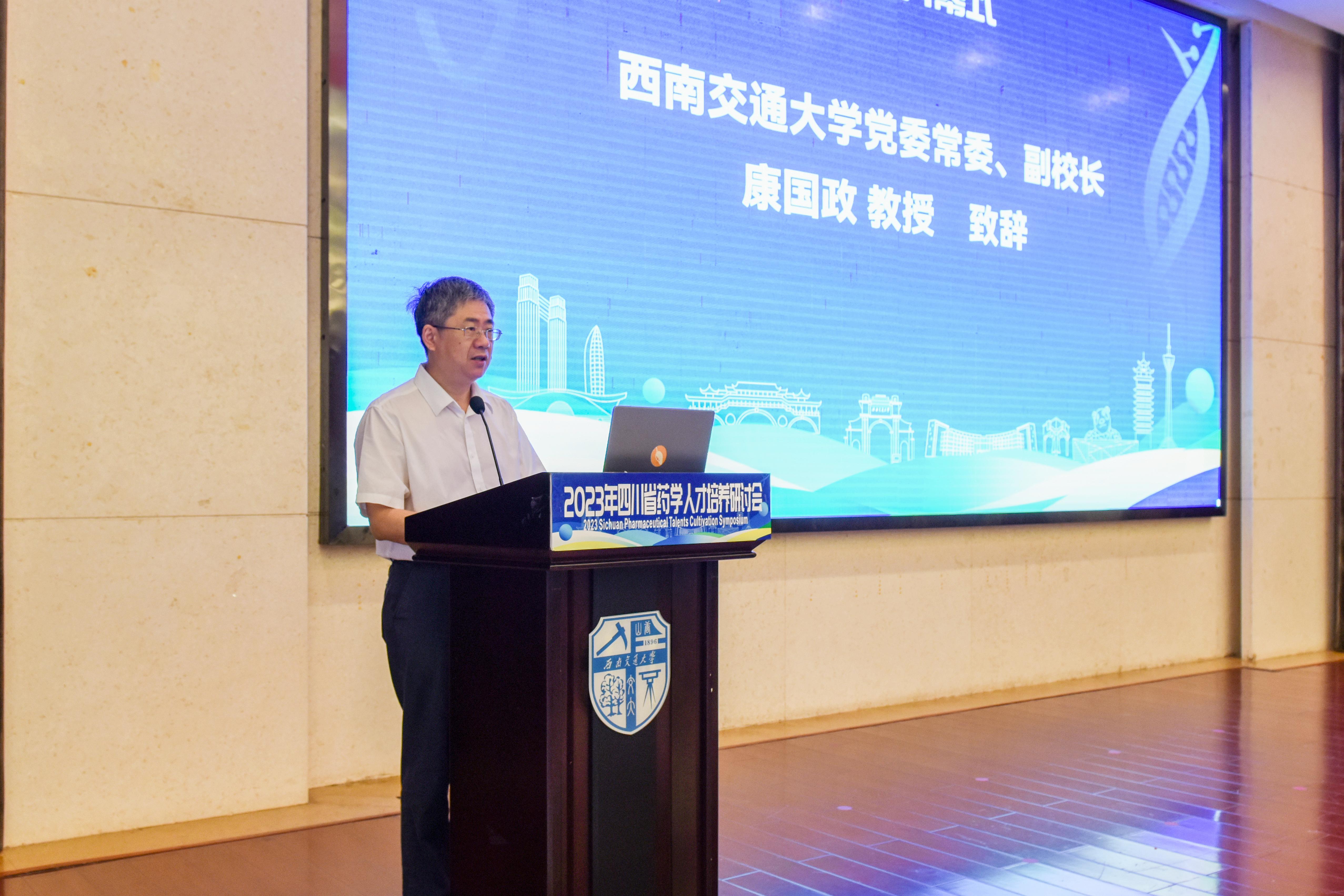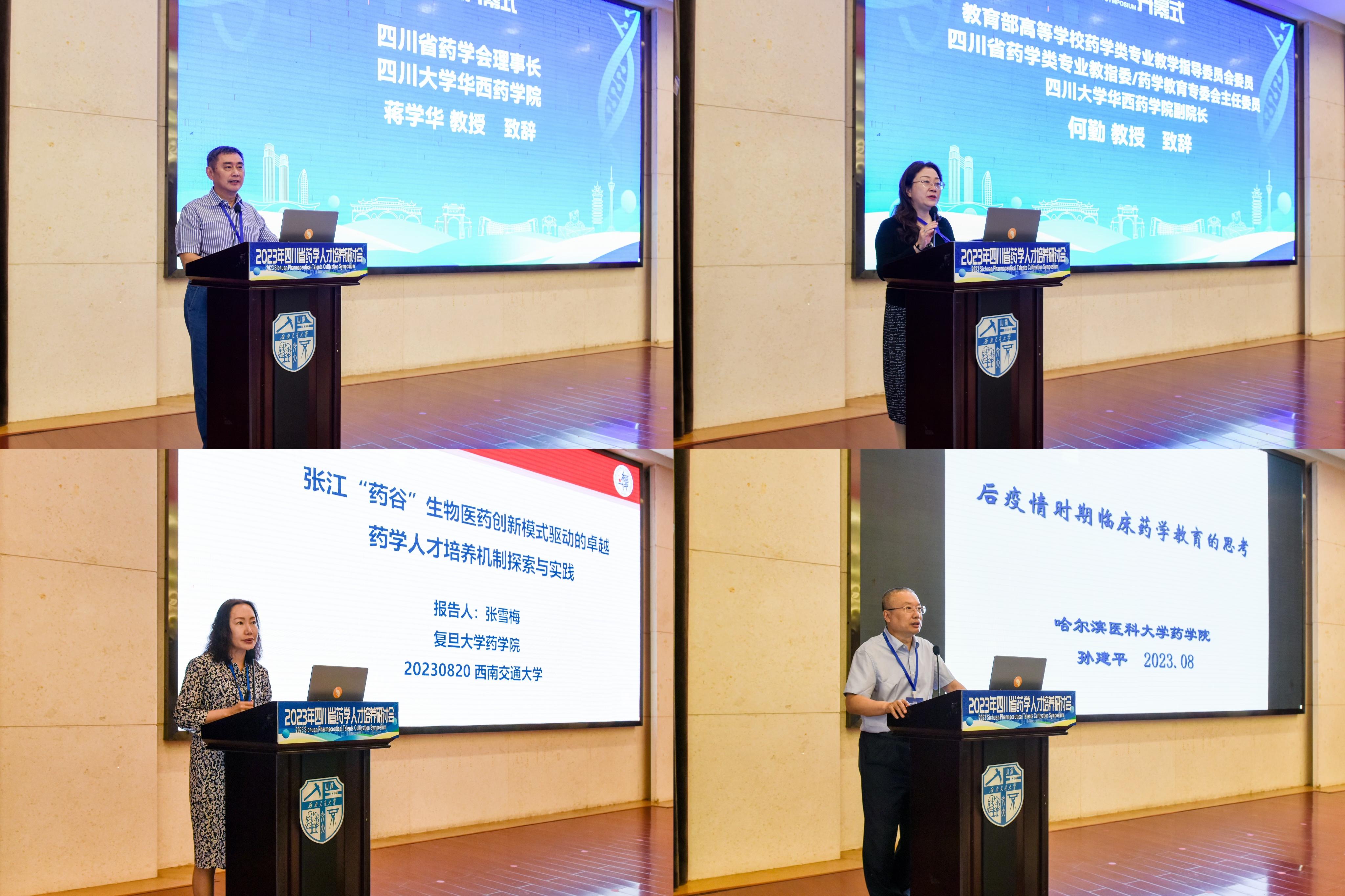 党委常委、副校长康国政,教育部高等学校药学类专业教学指导委员会主任委员、中国药学会药学教育专业委员会主任委员、中国药科大学副校长姚文兵,四川省药学会理事长蒋学华,以及来自中国药科大学、复旦大学、哈尔滨医科大学、四川大学、香蕉视频